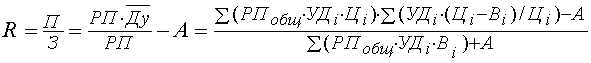 Последовательно заменяя плановый (базисный) уровень каждого факторного показателя на фактический и сравнивая результат расчета до и после замены каждого фактора, можно определить изменение уровня рентабельности за счет объема реализованной продукции РПобщ, ее структуры (УДi), цены (Ц), удельных переменных расходов (В) и суммы постоянных затрат (А).