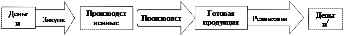 Бизнес в любой сфере деятельности начинается с определенной суммы денежной наличности, за счет которой приобретается необходимое количество ресурсов, организуется процесс производства и сбыт продукции. Капитал в процессе своего движения проходит последовательно три стадии кругооборота: заготовительную, производственную и сбытовую (рис1).