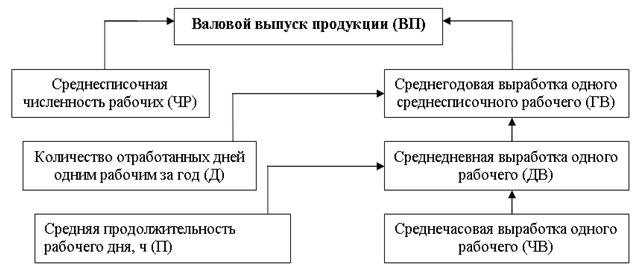 Рис 2.3. Детерминированная факторная система валового выпуска продукции