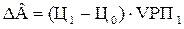 Расчет влияния сортового состава продукции на объем ее производства в стоимостном выражении можно произвести способом абсолютных разниц: изменение удельного веса по каждому сорту (∆Удi) нужно умножить на цену соответствующего сорта (Цi), результаты сложить и умножить на общий фактический выпуск данного вида продукции в натуральном выражении (VВПобщ1):