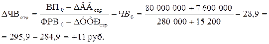 ∆ФРВстр=∑(∆Удi ∙ТЕi0)∙VВПобщ1=[(+0,2) ∙ 16+(-0,2)∙ 12]∙19 000=+15 200 чел.-ч.