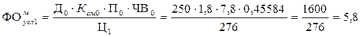 Для определения первого условного показателя фондоотдачи необходимо вместо базовой взять текущую среднегодовую стоимость единицы оборудования: