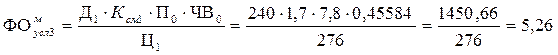 При расчете четвертого условного показателя фондоотдачи остается базовым только уровень среднечасовой выработки оборудования: