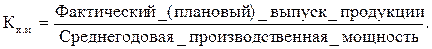 Степень использования производственной мощности (Ки.м.) определяется следующим образом: