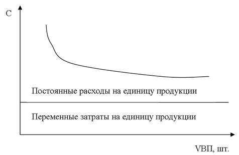 Рис. 11.5. Зависимость себестоимости единицы продукции от объема ее производства