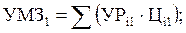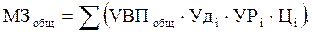 Большой удельный вес в себестоимости продукции занимают материальные затраты. Общая сумма материальных затрат в целом по предприятию зависит от объёма производства продукции (VВП), её структуры (Удi) и изменения удельных материальных затрат на отдельные виды продукции (УМЗi). Уровень последних, в свою очередь, может измениться из-за количества (массы) израсходованных материальных ресурсов на единицу продукции (УРi) и средней стоимости единицы материальных ресурсов (Цi).