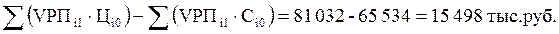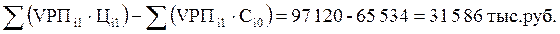 Требуется подсчитать также, сколько прибыли предприятие могло бы получить при фактическом объёме реализации, структуре и ценах, по при базовом уровне себестоимости продукции. Для этого из фактической суммы выручки следует вычесть условную сумму затрат: