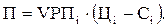 Прибыль от реализации продукции в целом по предприятию зависит от четырех факторов первого уровня соподчиненности: объема реализации продукции (VВП); ее структуры (Удi); себестоимости (Сi) и уровня среднереализационных цен (Цi):