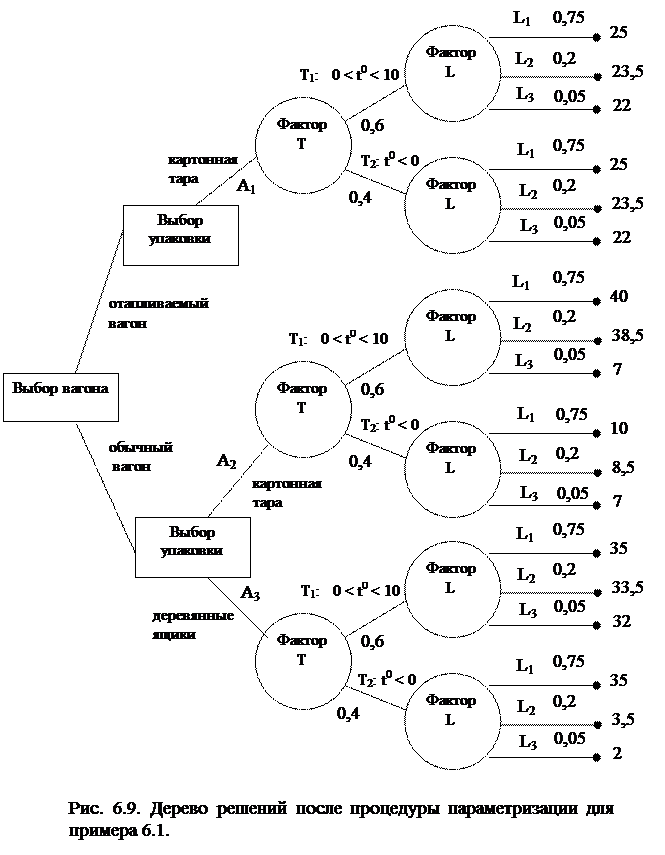 Как следует из табл. 6.1. и рис. 6.9., на первый взгляд, наиболее рискованной может показаться транспортировка в обычном вагоне в картонной таре, а наиболее надежной – в отапливаемом вагоне. Тем не менее, при различном отношении к риску выбираемые ЛПР решения могут различаться. Приведем соответствующую иллюстрацию в формате рассматриваемой модели оптимизации звена цепи поставок в условиях риска.