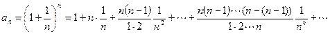 Определение. Число е (вторым замечательным пределом) называется предел числовой последовательности