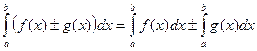 2. Интеграл от алгебраической суммы двух функций равен такой же сумме интегралов от этих функций, т.е.