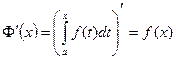 производная функции Ф (x) по переменному верxнему пределу равна подынтегральной функции f(x), т.е.