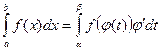 , а = φ (α), b = φ (β) и функция f(x) непрерывна в каждой точке х вида х = φ (t), где t є