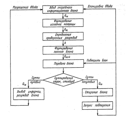 Рис.11. Алгоритм матричного кодирования данных, обнаружение и исправление ошибок.