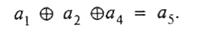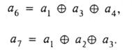 Найдем правило формирования элемента а5, пользуясь матрицей. Из первой строки следует, что в суммировании должен обязательно участвовать элемент а1 (только в этом случае а5 = 1), из второй — что элемент а3 в суммировании не должен участвовать, а из четвертой — что элемент а4 должен участвовать в суммировании. Итак,