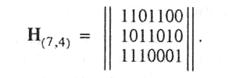 Алгоритм формирования проверочных элементов а5, а6, а7 может быть задан матрицей, называемой проверочной. Эта матрица содержит r строк и п столбцов. Применительно к сформированному нами коду (7,4) она имеет вид