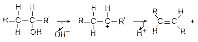 4. Реакции отщепления. Протекают одновременно по двум соседним атомам с отщеплением групп и образованием двойной связи. Отщепляемыми группами могут быть небольшие молекулы типа Н2О, NН3. Распад связи может проходить по одному из трех механизмов: а)согласованный механизм, б)постепенно с разрывом С-О связи и образованием карбокатиона, в) постепенно, с разрывом С-Н связи и образованием карбаниона. Ферменты катализируют отщепление воды двумя механизмами или протонированием ОН группы кислотой (кислотный катализ) или отщепление протона (основной катализ). Постепенное отщепление требует стабилизации образующихся заряженных групп противоположными по заряду группами (электростатический катализ). Одна из самых интересных реакций дихотомического процесса, катализируемая енолазой относится к этому типу реакций.