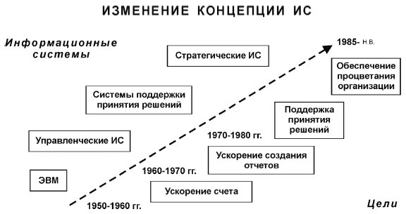 История развития информационных систем и цели их использования на разных этапах представлены в таблице 5.2 и на рисунке 5.1.