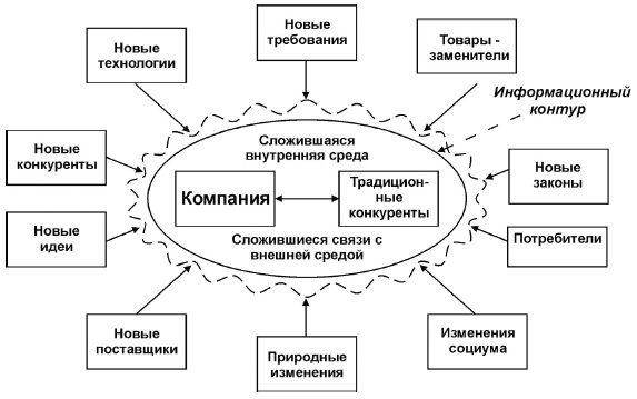 Компания и её информационные службы должны быть организованы таким образом, чтобы система управления помогала отслеживать изменения во внешнем мире и формировать соответствующие изменения в стратегии и политике компании. Таким образом, одной из главных задач ИС предприятия является обеспечение информационного взаимодействия между внешним окружением и внутренней средой (рис. 5.4).