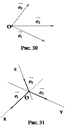 Направленные прямые, на которых положительное направление определяется базисными векторами и которые проходят через точку О, называются координатными осями:
