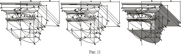 На рисунке 11 показан пример построения собственных и подающих теней капители.