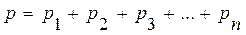 В соответствии с законом Дальтона давление смеси р равно сумме парциальных давлений отдельных компонентов смеси (давление, которое имел бы данный компонент, если он занимал бы весь объем при температуре смеси):