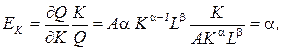 Поэтому для функции Кобба-Дугласа коэффициенты a, b постоянны и не зависят от объема факторов К, L.