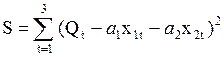 Составим функцию суммы квадратов отклонений: