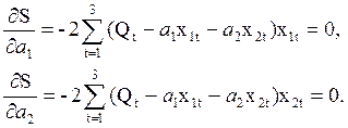 . Найдем производные этой суммы по неизвестным коэффициентам