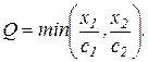 Коэффициенты сi выражают количество i -го ресурса, необходимого для производства единицы продукта. Функция Леонтьева выражает решение задачи линейного программирования, возникающей в модели “затраты–выпуск”: