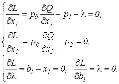 В этом случае формируется функция Лагранжа, которая в случае двух факторов и одного ограничения имеет вид: