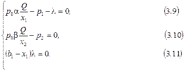 Объем затрат второго ресурса для оптимального плана определяется из соотношения (3.12) с учетом вида производственной функции: