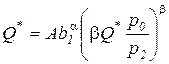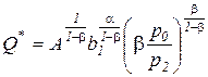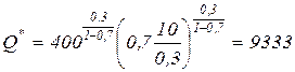 Оптимальный объем выпущенной продукции определяется из выражения производственной функции Кобба-Дугласа с учетом соотношения (3.12):