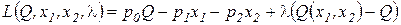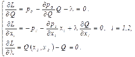 Решение задачи коммерческой организации может быть получено методом множителей Лагранжа: