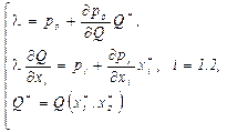 Функции спроса на ресурсы можно получить из условий (3.16), (3.17). выражения предельных продуктов MQi получены в примере 1.3.3: