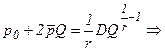 Пример 3.7.1. Если мукомольный завод (пример 3.3.1), приобретающий зерно по цене 200 руб. за тонну и энергию по цене 300 руб. за килоВтчас, является монополистом, то цена его продукции снижается с ростом продаж р0=10000-2Q (руб. за тонну). Определить оптимальный объем выпуска а) при убывающей отдаче от расширения масштаба (r=0,5),