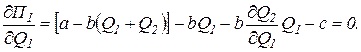 Функция прибыли одного из дуполистов записывается следующим образом: