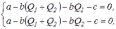 Рассмотрим простейший случай олигополии, в условиях которой действуют два производителя однородного товара (дуполия), производственный процесс которых характеризуется постоянным уровнем предельных издержек, а реализация происходит по линейной модели спроса.