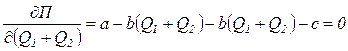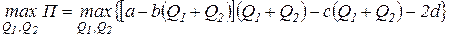 Дуполисты могут вступить в соглашение о совместной деятельности на рынке с целью получения максимальной совокупной прибыли так называемого простого товарищества. В этом случае условия выбора оптимальных значений объемов выпуска дуполистов имеют вид: