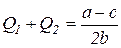 Таким образом, в пределах кооптимальной линии ни одна из фирм не может увеличить свою прибыль, не уменьшив прибыль конкурента. Иначе говоря, сочетания объемов выпуска фирм на этой прямой являются равноэффективными точками для кооперативной дуполии, а сама линия определяет множество Парето для дуполистов, стремящихся наращивать индивидуальную прибыль.