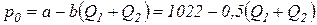 Предположим, что максимальная цена, которую готов заплатить покупатель, составляет 1022 рубля, а при появлении на рынке каждой дополнительной единицы выпуска цена понижается на 0,5 рубля, то есть функция спроса: