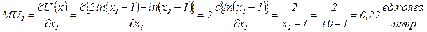 Пример 4.2.1. Предпочтения потребителя, приобретающего 10 литров молока и 2 тюбика зубной пасты в месяц, выражаются логарифмической функцией полезности с коэффициентами
