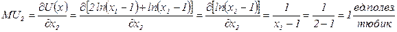 Логарифмическая функция полезности применяется для описания предпочтений потребителя, который может быть удовлетворен при отсутствии полезного вклада какого-либо блага, то есть если блага являются субститутами.