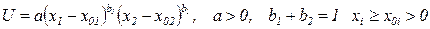 Функция (4.8) применяется для описания предпочтений потребителя, который не удовлетворен при отсутствии полезного вклада хотя бы одного блага.