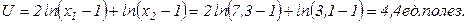 Таким образом, потребитель, приобретая 7,3 литра молока и 3,1 тюбика пасты в месяц при доходе в 120 руб. достигает максимального удовлетворения. Его уровень удовлетворенности при этом найдем, подставив оптимальные объемы потребления товаров в функцию полезности (пример 4.2.1):