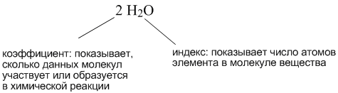 В уравнении химической реакции для выравнивания количества одинаковых атомов в разных частях уравнения используются коэффициенты, которые записываются перед формулами веществ. Коэффициенты не надо путать с индексами в химических формулах.