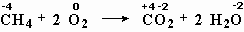 Рассмотрим типичную химическую реакцию: сгорание природного газа (метана) в кислороде воздуха. Те из вас, у кого дома есть газовая плита, могут ежедневно наблюдать эту реакцию у себя на кухне. Запишем реакцию так, как показано на рис. 5-1.