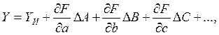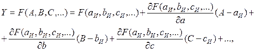 Дальнейшую обработку результатов наблюдений можно проводить по-разному. Наиболее распространенным является метод линеаризации, основанный на разложении функциональной зависимости Y = F (A, B, C,...) в ряд Тейлора с ограничением ряда членами, содержащими только первые производные: