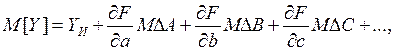 Применяя к выражению (14-20) сформулированные выше правила, найдем математическое ожидание и дисперсию случайной величины Y, полученной при подстановке в функциональную зависимость значений аргументов A, B, C,...: