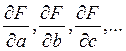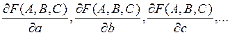 вычисляя производные в точке, где аргументы принимают значения A, B, C, …